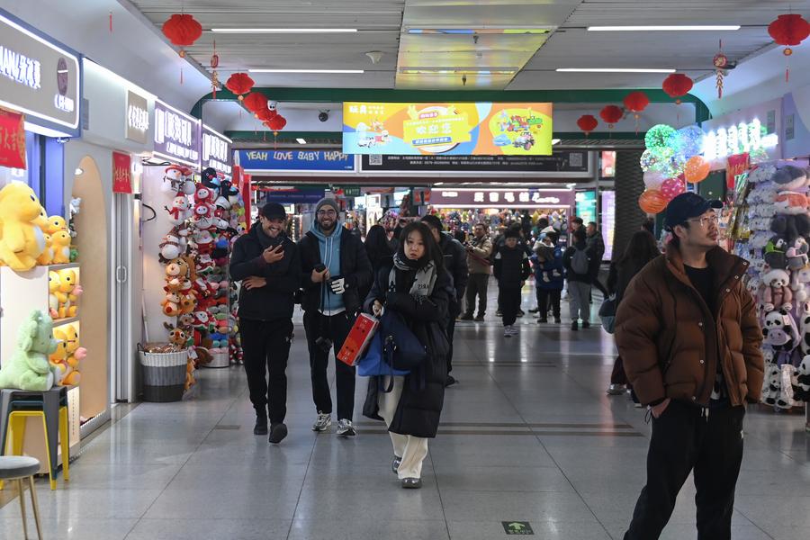 People visit the Yiwu International Trade Market in Yiwu, east China's Zhejiang Province, Feb. 9, 2025. (Xinhua/Huang Zongzhi)