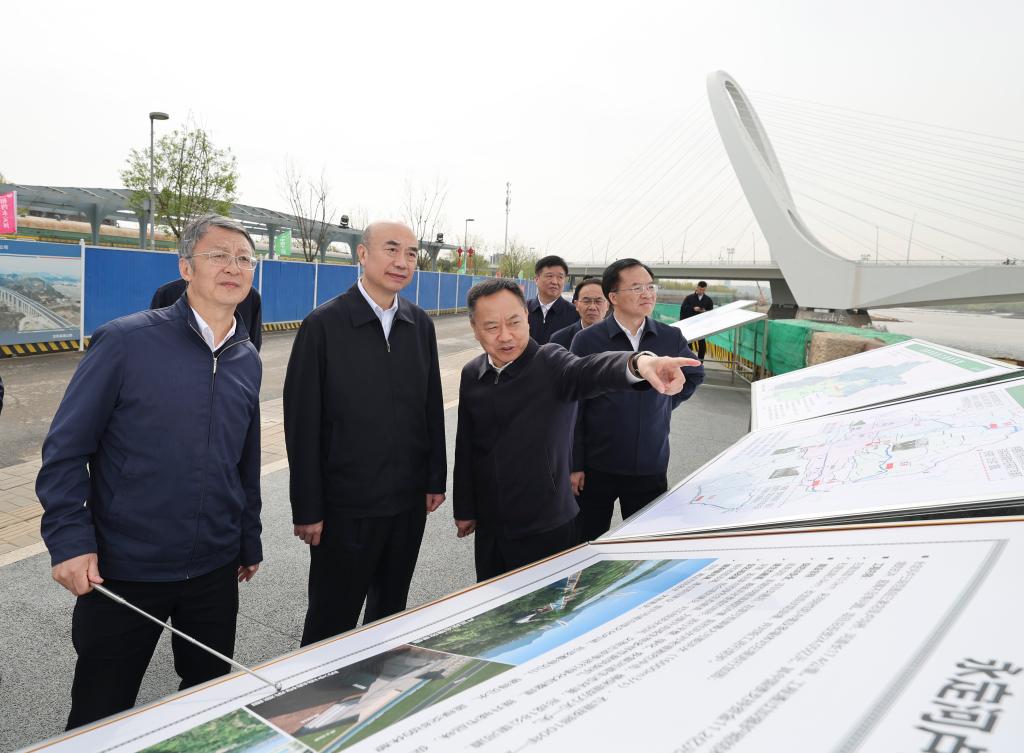 Chinese Vice Premier Liu Guozhong, also a member of the Political Bureau of the Communist Party of China Central Committee, inspects the construction site of a comprehensive improvement project of the Yongding River in Shijingshan District of Beijing, capital of China, April 9, 2025. Liu made a research trip to Beijing and Hebei. (Xinhua/Ding Haitao)