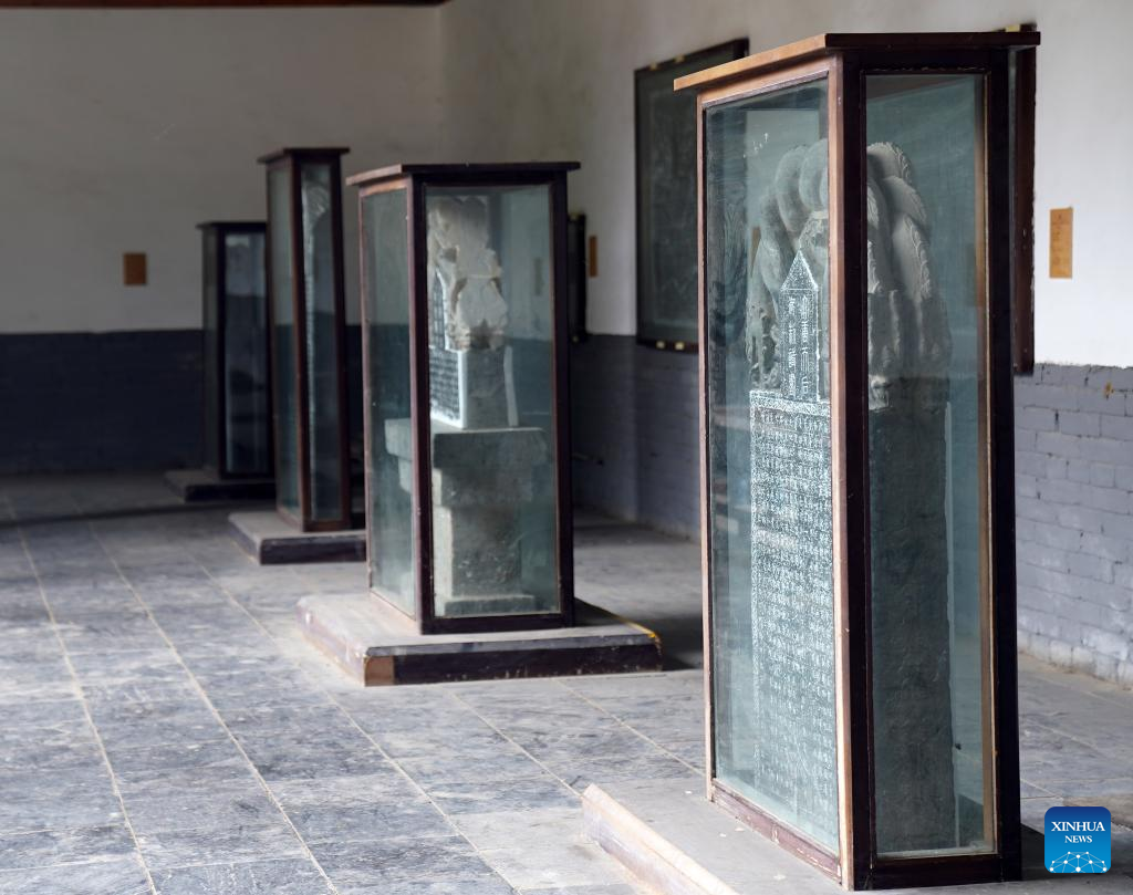 This undated file photo shows a stele in Shaolin Temple in Dengfeng City, central China's Henan Province. Three documentary heritage collections submitted by China have been inscribed in the UNESCO Memory of the World Register, the United Nations Educational, Scientific and Cultural Organization announced on Thursday. Among the 74 newly added entries, China contributed two solo submissions - the Bianzhong of Marquis Yi of Zeng and the Steles of Shaolin Temple - as well as a joint submission with Sri Lanka: the Trilingual Inscription. (Xinhua)