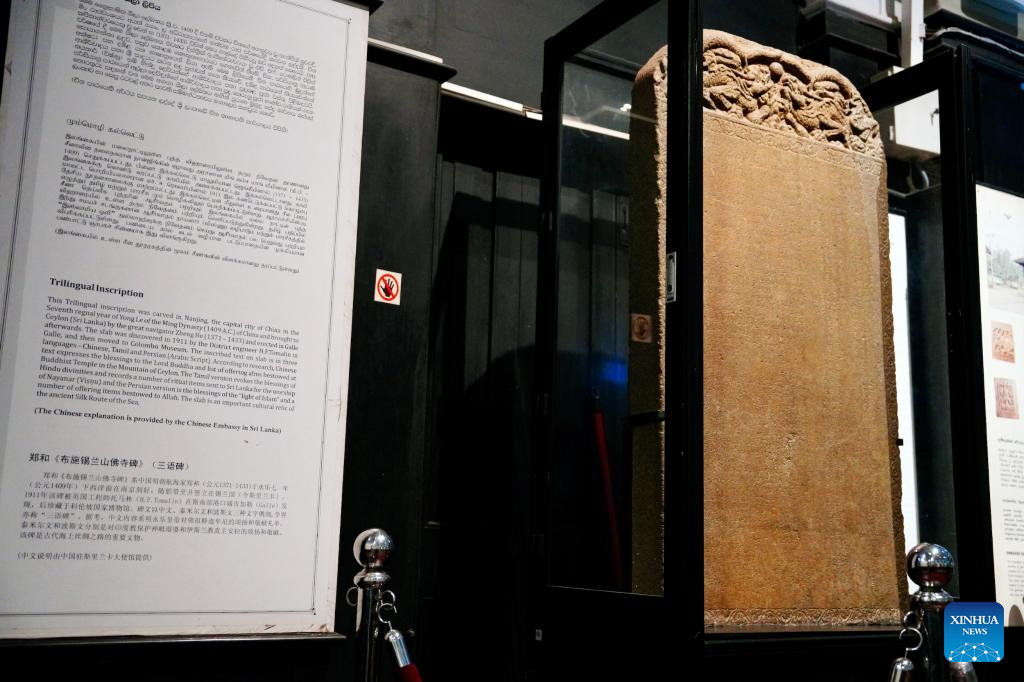 The monument, brought to Sri Lanka over 600 years ago by renowned Chinese navigator Zheng He during his third voyage, is held by the national museum in Colombo as one of the most precious collections. It is a testament to cultural exchanges between China and the outside world, as inscriptions written in Chinese, Persian and Tamil recorded ceremonial offerings to a sacred mountain shrine by Zheng's fleet.