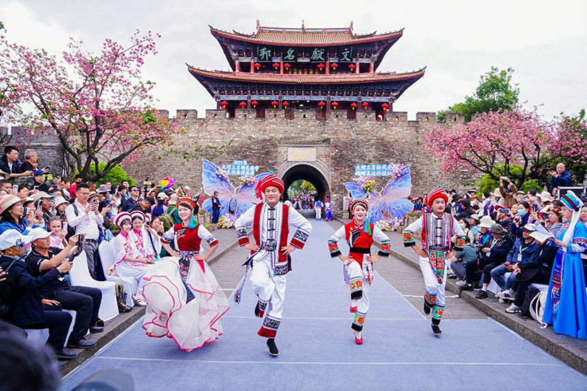 Photo shows a scene from an ethnic fashion show in Dali Bai Autonomous Prefecture, southwest China's Yunnan Province. (Photo courtesy of the new media association of Dali Bai Autonomous Prefecture)