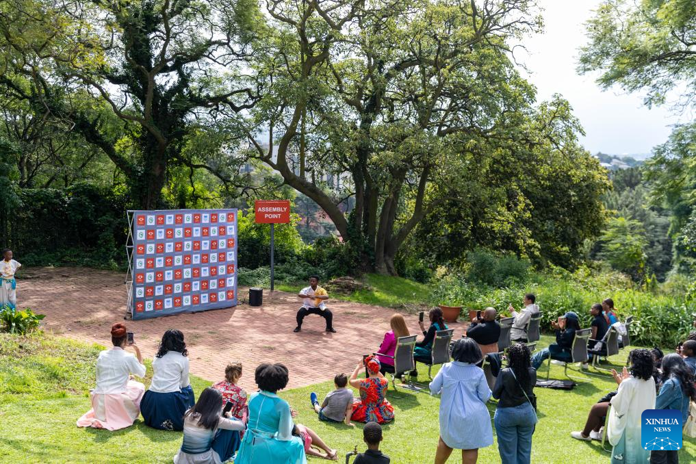 People watch Kungfu performance during an event celebrating the upcoming International Chinese Language Day at the Confucius Institute at the University of Johannesburg in Johannesburg, South Africa, April 17, 2025. (Xinhua/Zhang Yudong)