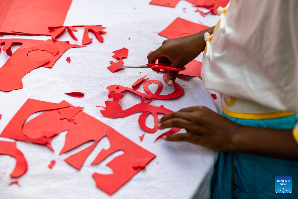 A student makes paper-cutting during an event celebrating the upcoming International Chinese Language Day at the Confucius Institute at the University of Johannesburg in Johannesburg, South Africa, April 17, 2025. (Xinhua/Zhang Yudong)