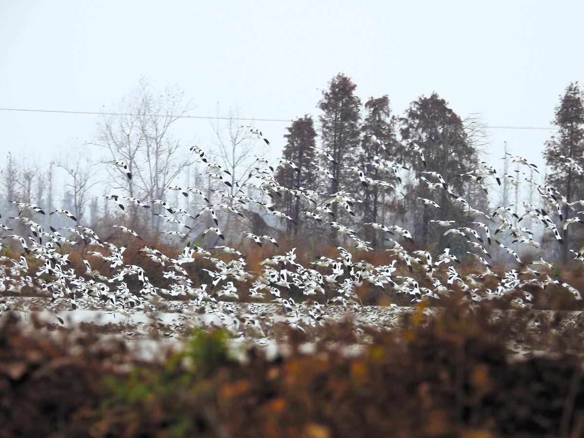 Migratory birds feed and play at the Chaqizhou Reclamation Farm in Yugan last winter. YUAN WENBIN/FOR CHINA DAILY