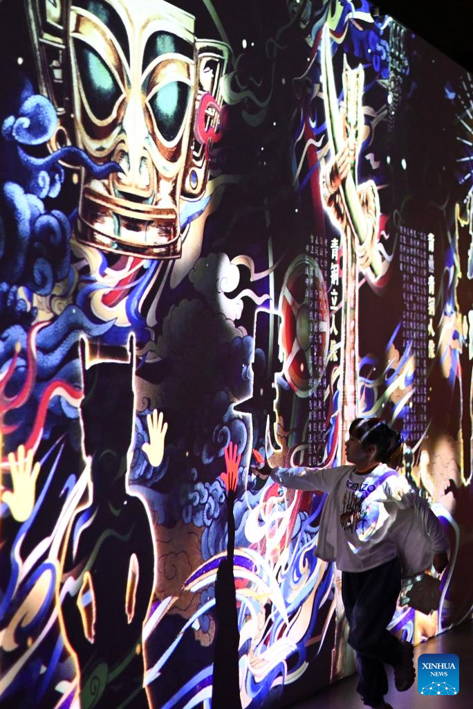 Immersive art exhibition of Sanxingdui opens in China's Tianjin