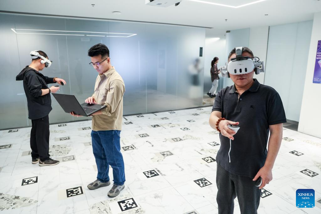 Technical staff test VR devices at the XVERSE science and technology lab in Nanshan District of Shenzhen, south China's Guangdong Province, March 4, 2025. (Xinhua/Mao Siqian)