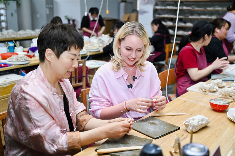 Eurasian journalists explore China's 'never-fading' peony porcelain art in Luoyang