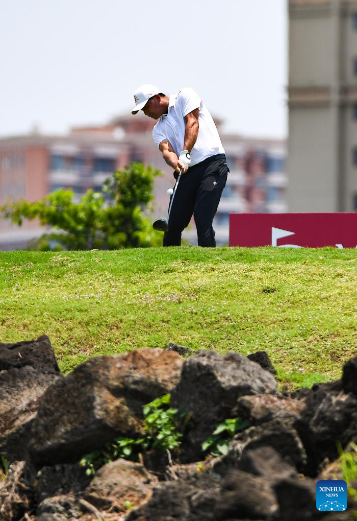 Wu Ashun of China hits his tee shot during the round 1 at the Hainan Classic golf tournament of the DP World Tour in Haikou, south China's Hainan Province, April 24, 2025. (Xinhua/Yang Guanyu)