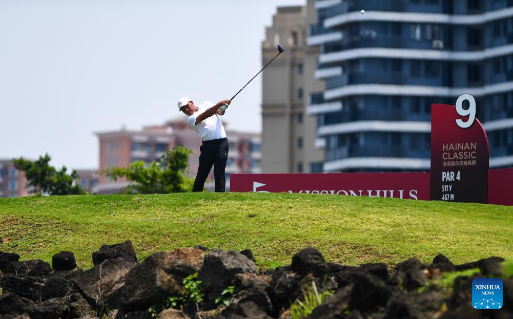 Romain Langasque of France hits his tee shot during the round 1 at the Hainan Classic golf tournament of the DP World Tour in Haikou, south China's Hainan Province, April 24, 2025. (Xinhua/Yang Guanyu)