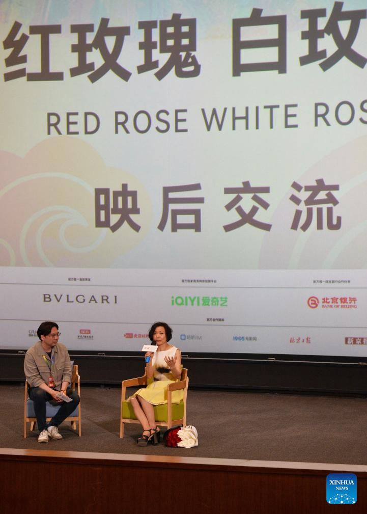 Joan Chen (R), jury member of the 15th Tiantan Award, attends an activity after the screening of Red Rose White Rose during the 15th Beijing International Film Festival in Beijing, capital of China, April 25, 2025. (Xinhua/Xiao Xiao)