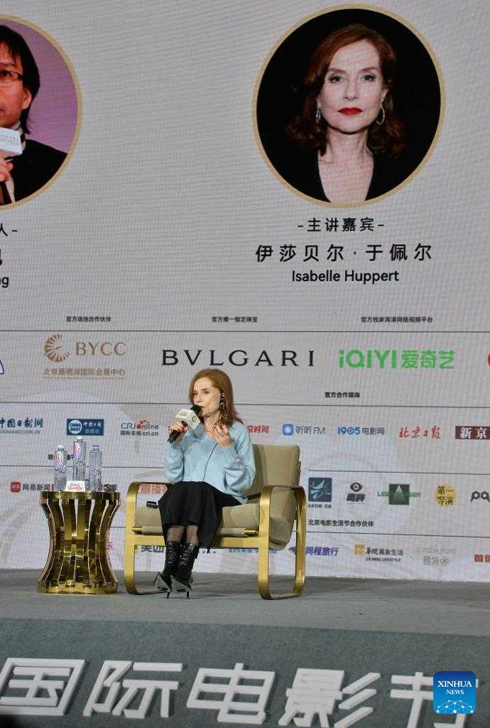 French actress Isabelle Huppert attends a workshop and masterclass during the 15th Beijing International Film Festival in Beijing, capital of China, April 23, 2025. (Xinhua/Xiao Xiao)