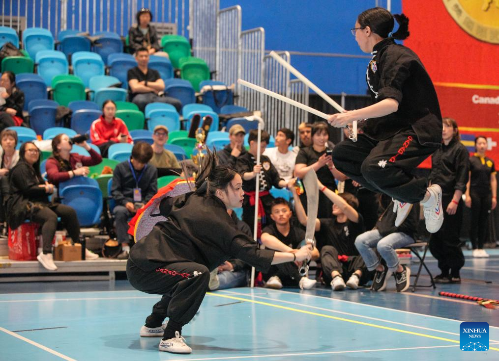 Contestants compete in the Wushu division during the 2025 Can-Am Martial Arts Championships in Richmond, British Columbia, Canada, April 26, 2025. (Photo by Liang Sen/Xinhua)