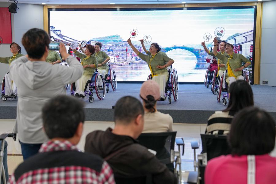 Members of a wheelchair dance team perform in Nanjing, east China's Jiangsu Province, April 27, 2025. (Xinhua/Li Bo)