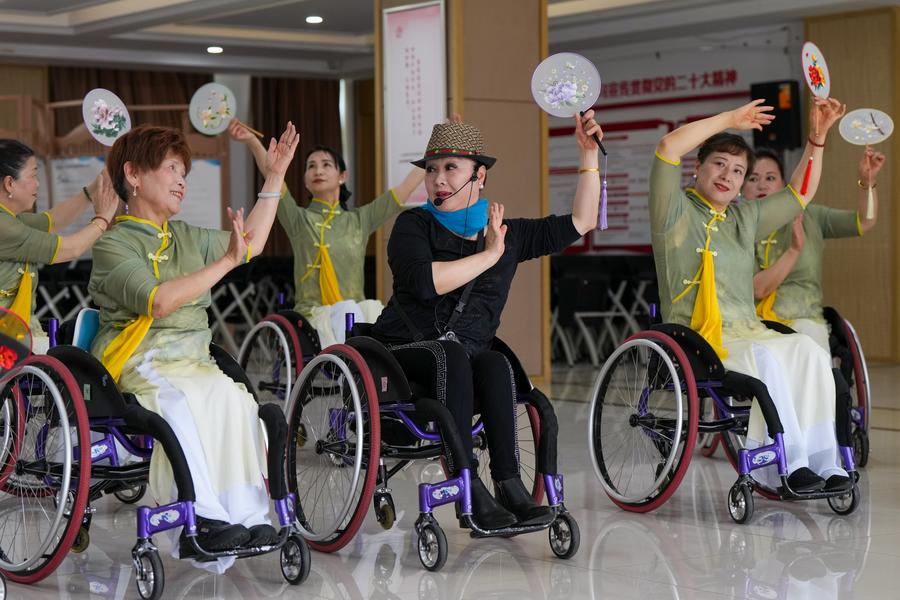 Members of a wheelchair dance team rehearse in Nanjing, east China's Jiangsu Province, April 27, 2025. (Xinhua/Li Bo)