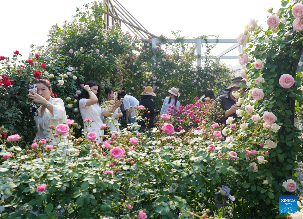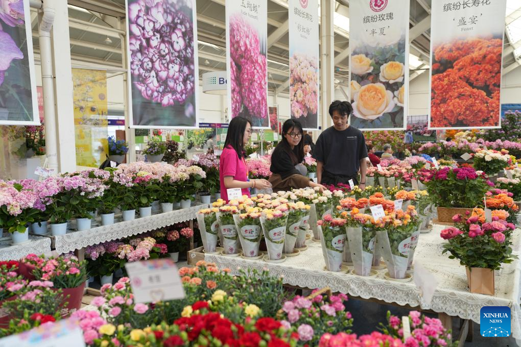 Visitors view flowers during the 2025 World Garden Show in Haining City, east China's Zhejiang Province, April 28, 2025. The event kicked off here on Monday with a total exhibition area of 500,000 square meters. (Xinhua/Weng Xinyang)