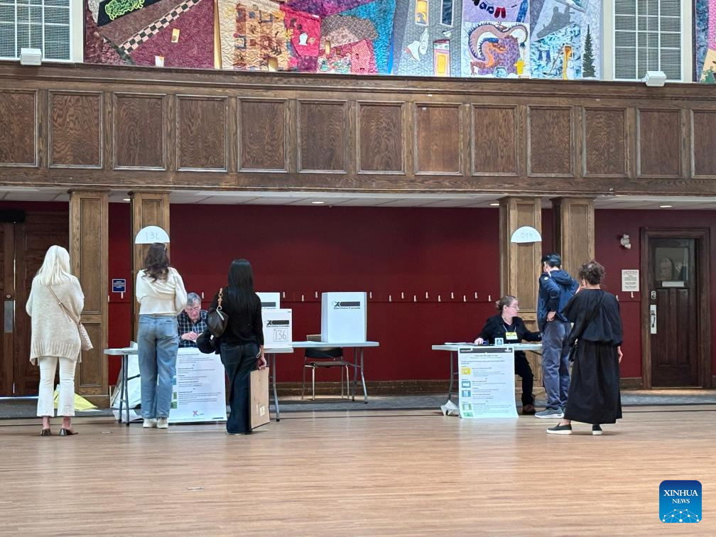 People vote at a polling station in Ottawa, Canada, on April 28, 2025. Millions of Canadians are lining up to cast their ballots on Monday as U.S. President Donald Trump weighed in on the election with a new threat of annexation of the country. (Photo by Min Chen/Xinhua)