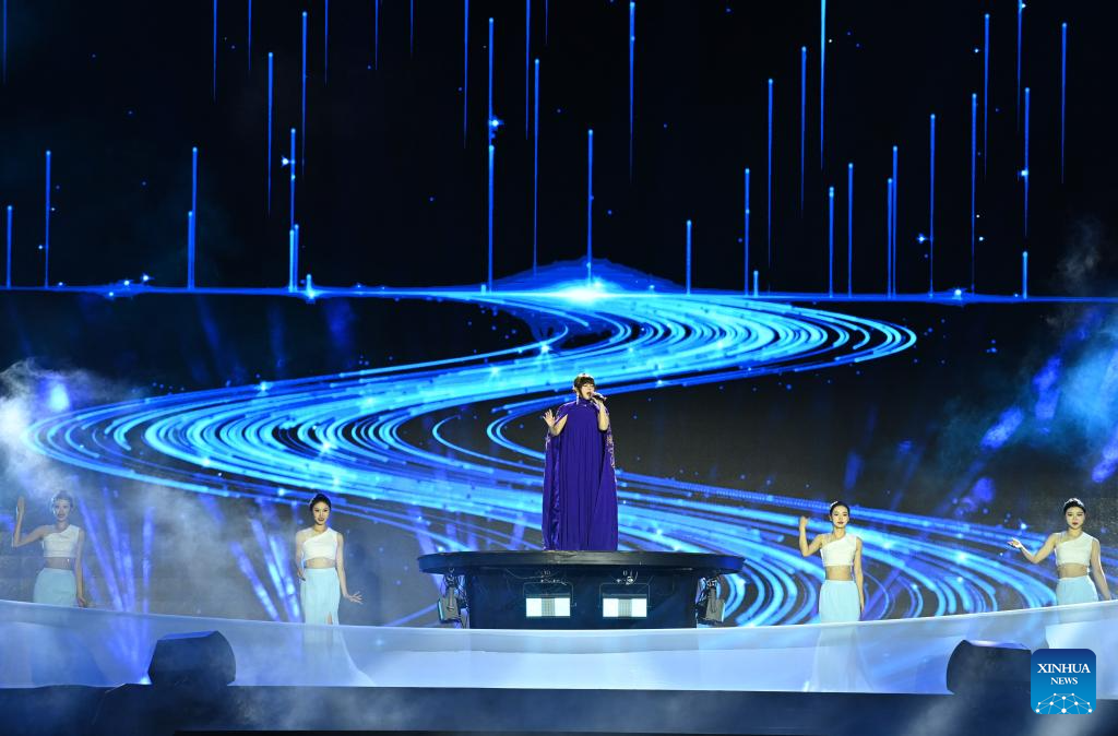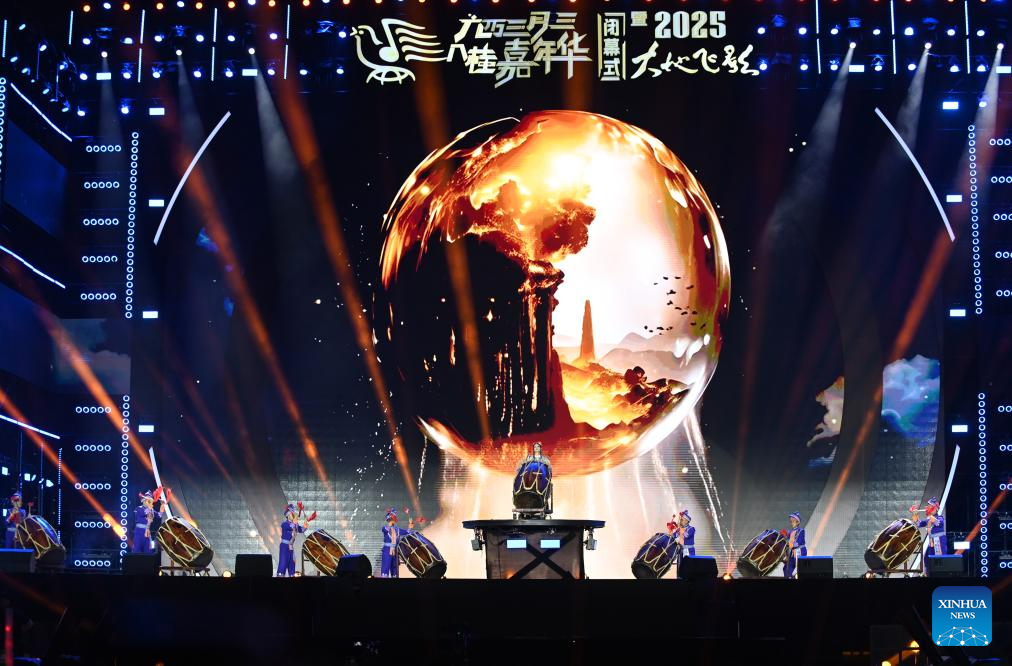 A performance is staged at the closing ceremony of a carnival in Nanning, south China's Guangxi Zhuang Autonomous Region, April 28, 2025. The carnival was held to mark the Sanyuesan Festival, a traditional festival celebrated on the third day of the third lunar month by various ethnic groups in China. (Xinhua/Lu Boan)