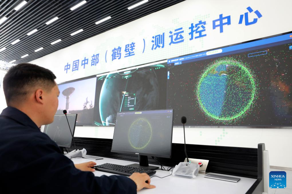 An employee monitors operation of satellites at a satellite measurement and control center in Hebi, central China's Henan Province, April 21, 2025. (Xinhua/Du Xiaoyi)