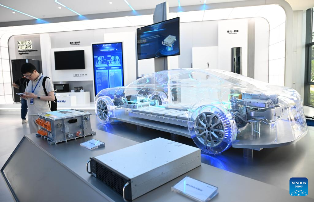 Silicon carbide charging modules and a traction motor controller for New Energy Vehicles are pictured at a company of Gree Electric Appliances Inc. of Zhuhai in south China's Guangdong Province, April 29, 2025.