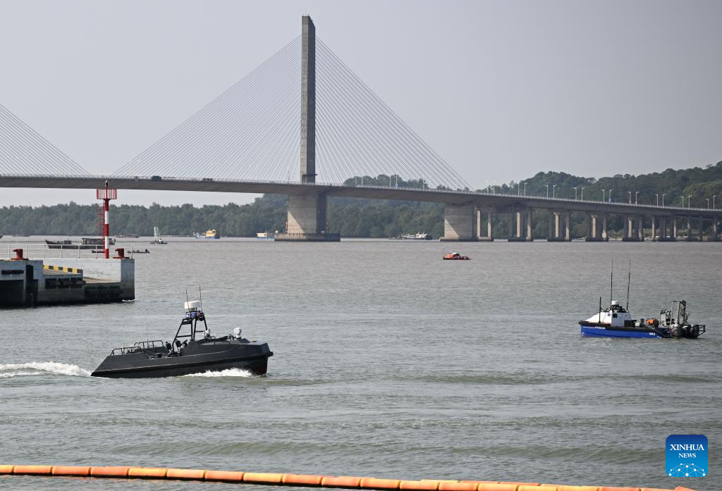 An unmanned yacht of Zhuhai Yunzhou Intelligence Technology Ltd. is tested in Zhuhai, south China's Guangdong Province, April 29, 2025.