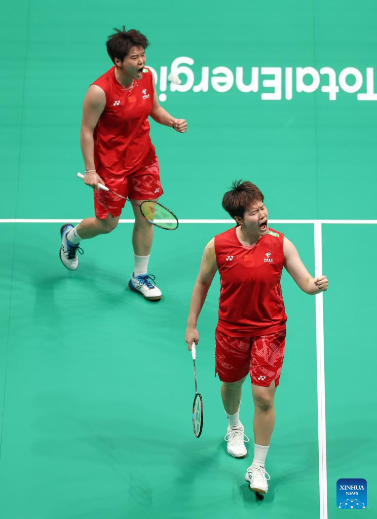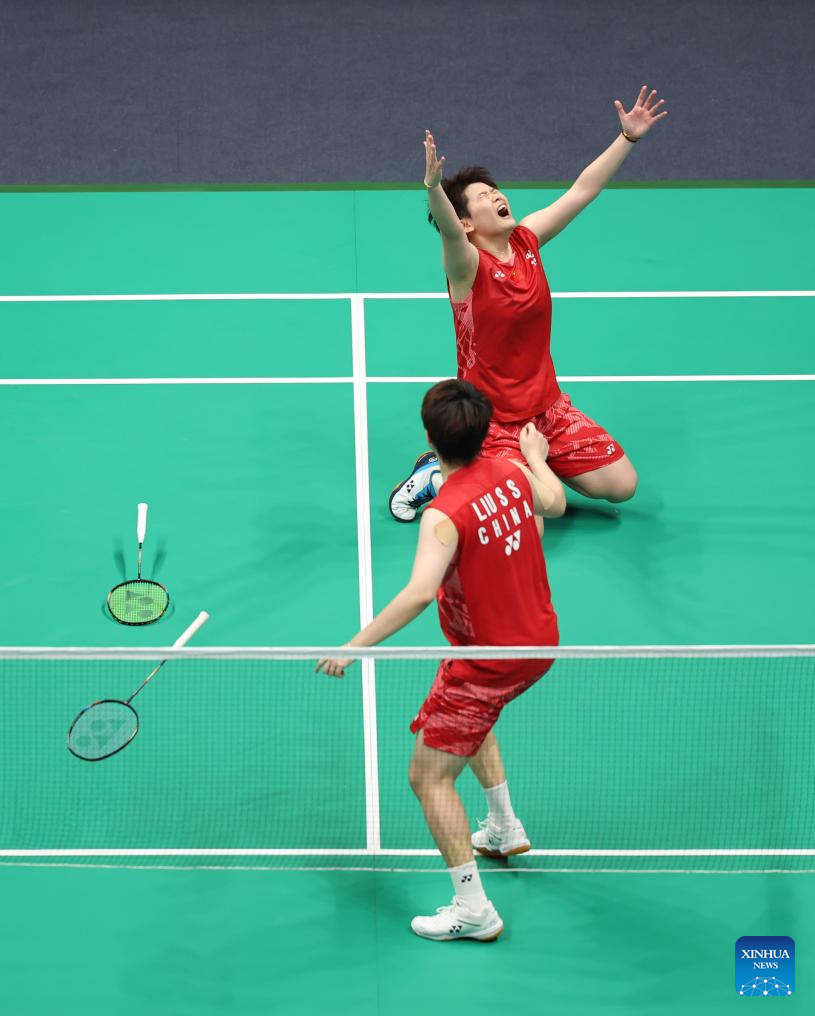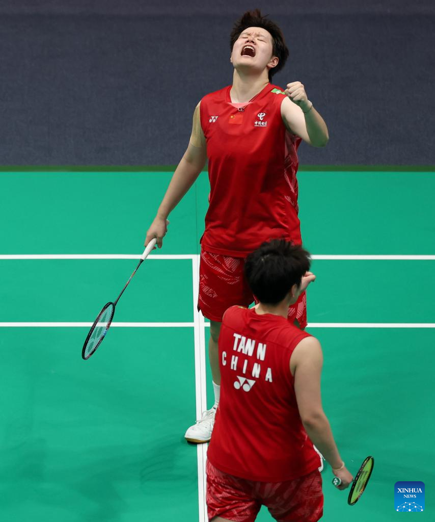 Olympic women's doubles silver medalists Tan Ning and Liu Shengshu sealed the victory for China after defeating world No. 3 Baek Ha-na and Lee So-hee 21-14, 21-17.