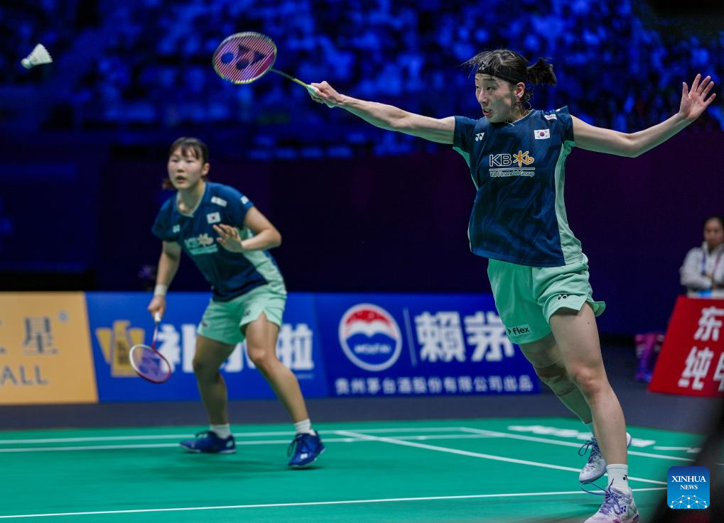 Baek Ha Na/Lee So Hee (R) of South Korea compete in the women's doubles match against Liu Shengshu/Tan Ning of China during the final match between China and South Korea at BWF Sudirman Cup in Xiamen, southeast China's Fujian Province, May 4, 2025. (Xinhua/Sun Fei)