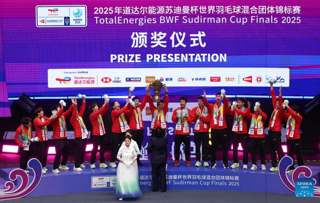 XIAMEN, China, May 4 (Xinhua) -- China clinched the 2025 Sudirman Cup title after beating South Korea 3-1 in the final here on Sunday.