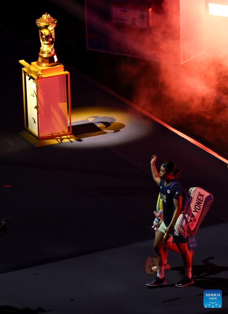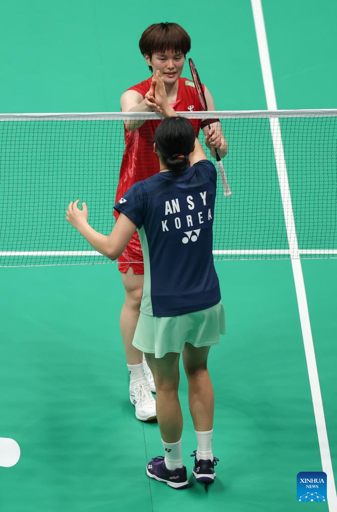 An Se Young of South Korea walks in before the women's singles match against Wang Zhiyi of China during the final match between China and South Korea at BWF Sudirman Cup in Xiamen, southeast China's Fujian Province, May 4, 2025. (Xinhua/Wang Kaiyan)