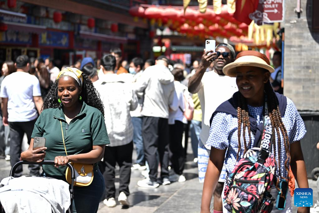 Foreign tourists visit the Tianjin Ancient Culture Street in Tianjin, north China, May 3, 2025. (Xinhua/Li Ran)