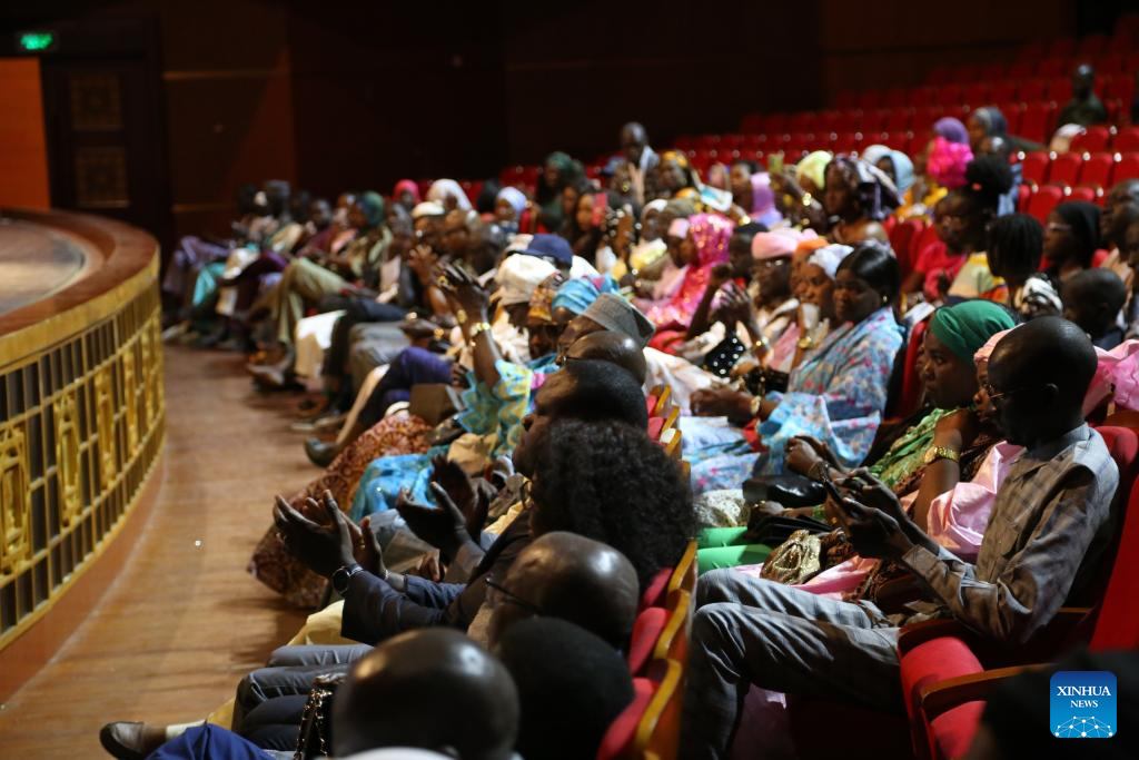 This photo taken on May 1, 2025 shows the scene of the documentary premiere held at the Grand National Theater in Dakar, the capital of Senegal. As the film ended and the lights gradually came on, Ababacar Niang, a Senegalese businessman, could hardly contain his excitement after watching his transnational journey to Yiwu City, east China's Zhejiang Province, unfold on the big screen. The scene took place on Thursday evening, when a film documenting Niang's life in Yiwu premiered at the Grand National Theater in Dakar, the capital of Senegal.(Xinhua/Si Yuan)