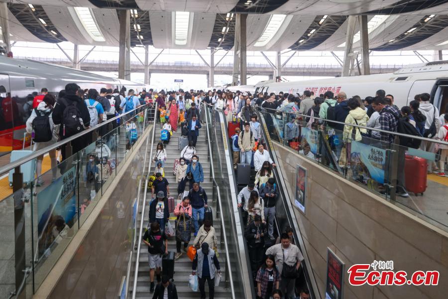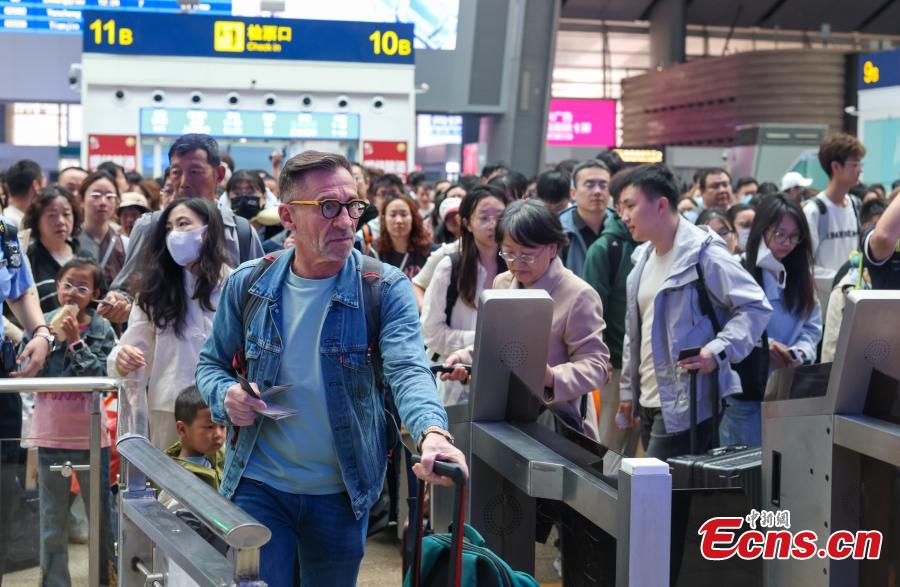 Passengers arrive at Beijing South Railway Station, May 5, 2025. (China News Service/Jia Tianyong)