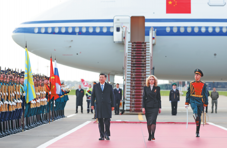 President Xi Jinping arrives in Moscow on Wednesday for a state visit to Russia and to attend celebrations marking the 80th anniversary of the victory of the Soviet Union's Great Patriotic War. (Feng Yongbin/China Daily)