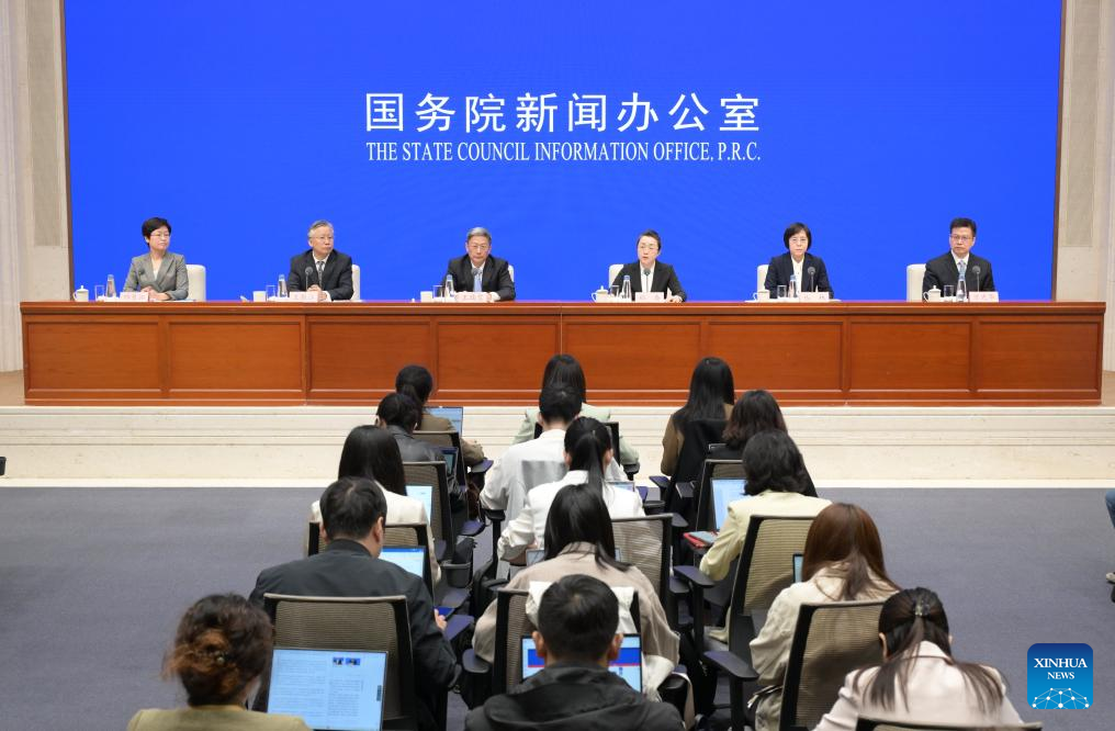 The State Council Information Office holds a press conference on the Private Sector Promotion Law of the People's Republic of China, in Beijing, capital of China, May 8, 2025. (Xinhua/Li He)