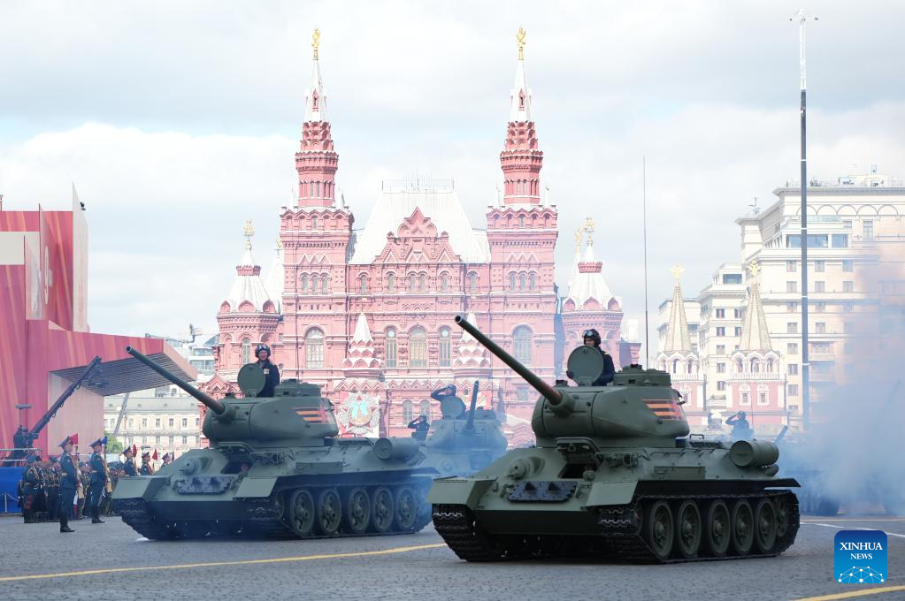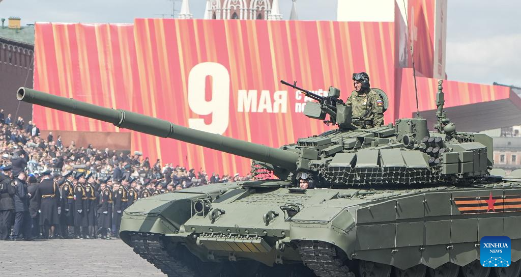 A tank marches during a grand parade marking the 80th anniversary of the victory in the Soviet Union's Great Patriotic War in Moscow, Russia, May 9, 2025. (Xinhua/Lai Xiangdong)