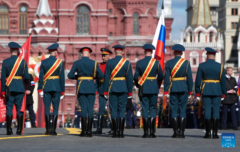 Members of an honor guard prepare to attend a grand parade marking the 80th anniversary of the victory in the Soviet Union's Great Patriotic War in Moscow, Russia, May 9, 2025. (Xinhua/Lai Xiangdong)