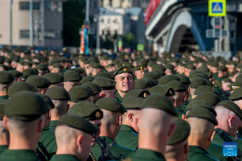 Soldiers prepare to attend a grand parade marking the 80th anniversary of the victory in the Soviet Union's Great Patriotic War in Moscow, Russia, May 9, 2025. (Xinhua/Lai Xiangdong)