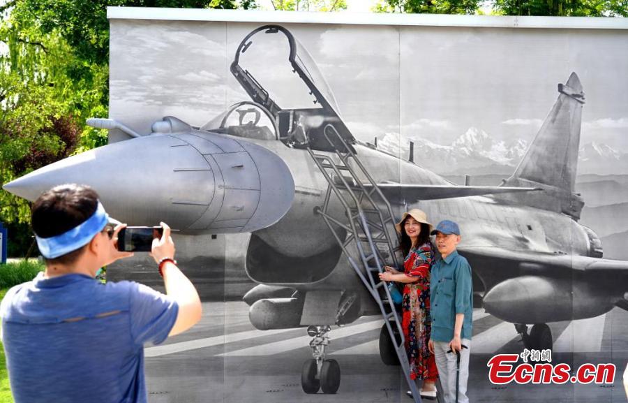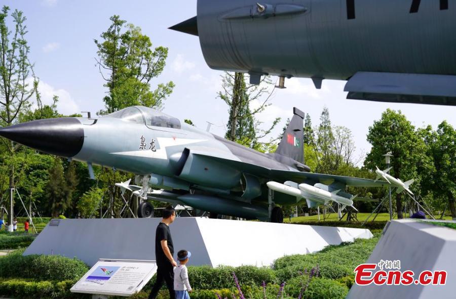 Visitors view fighter jets displayed at Chengfei Aviation Theme Education Base in Chengdu, southwest China's Sichuan Province, May 10, 2025. (China News Service/Lyu Yang)