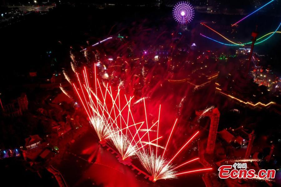 The fireworks show presents a visual feast during the Fireworks Industry Expo kicked off on Friday in Nanchang.