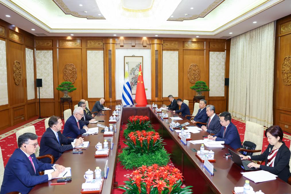 When meeting with Uruguayan foreign minister Mario Lubetkin, Wang said that China is willing to work with Uruguay to deepen high-quality Belt and Road cooperation, and continuously enrich the connotation of the China-Uruguay comprehensive strategic partnership with stronger political mutual trust, higher-level mutually beneficial cooperation and closer multilateral collaboration.