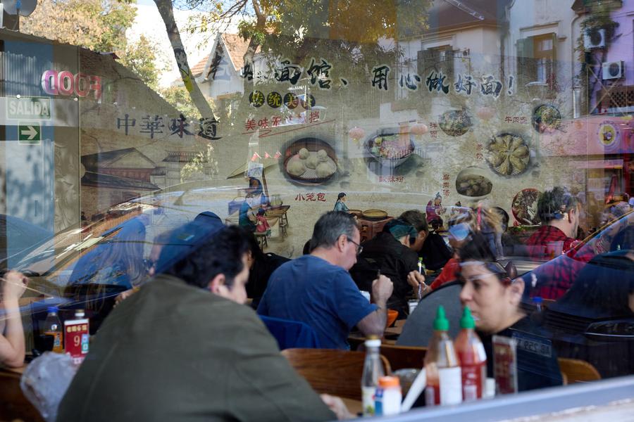 People have meals at a Chinese restaurant in Chinatown in Buenos Aires, Argentina, May 10, 2025. (Xinhua/Meng Dingbo)