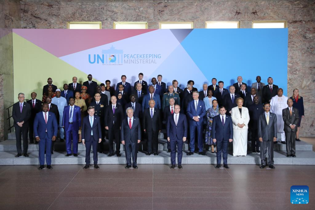 Representatives attending the UN Peacekeeping Ministerial 2025 pose for a group photo in Berlin, Germany, May 13, 2025. (Xinhua/Du Zheyu)