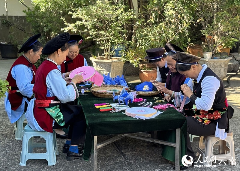 Women learn embroidery techniques at a heritage center in Diannan town, Heqing county, southwest China's Yunnan Province. (Photo/Jiang Ze)