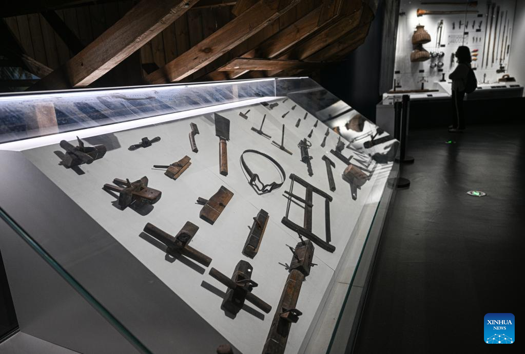 This photo taken on May 13, 2025 shows the shipbuilding tools of Tanka people displayed at Hainan Tanka Museum in Lingshui, south China's Hainan Province. (Xinhua/Pu Xiaoxu)