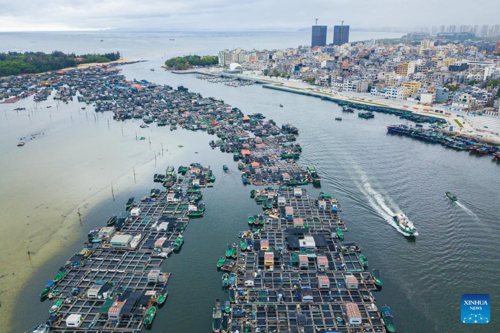 An aerial drone photo taken on May 13, 2025 shows a view of the Tanka sampans in Lingshui, south China's Hainan Province. (Xinhua/Pu Xiaoxu)