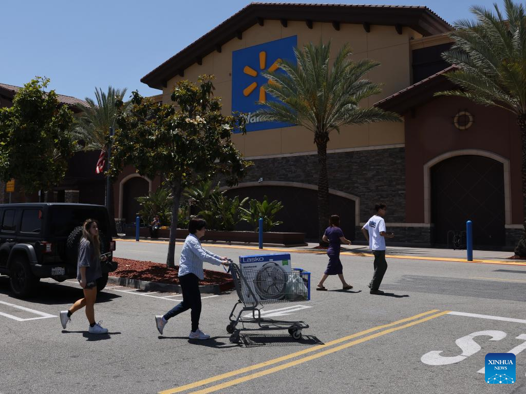 People shop at a Walmart store in Rosemead, California, the United States, on May 15, 2025. Walmart on Thursday reported mixed results for its fiscal first quarter ending April 30, narrowly missing revenue expectations as the retailer signaled that rising tariffs are likely to lead to higher prices for consumers. (Photo by Qiu Chen/Xinhua)