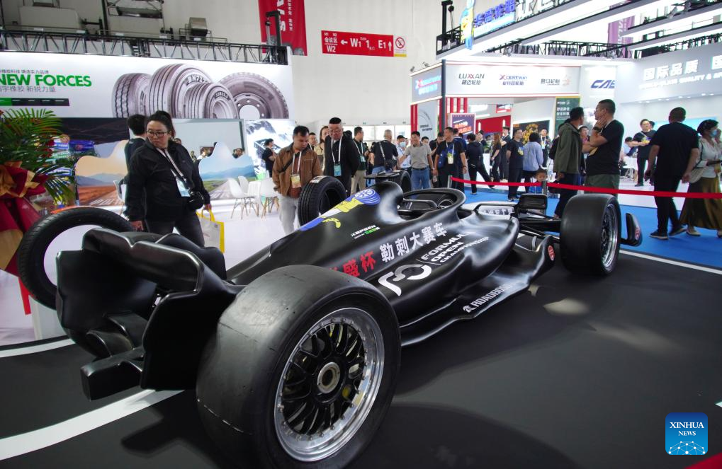 People visit the 15th China (Guangrao) International Rubber Tire & Auto Accessory Exhibition in Dongying City, east China's Shandong Province, May 15, 2025. The exhibition kicked off here on Thursday, showcasing cutting-edge technologies and innovative products across the rubber tire industry.