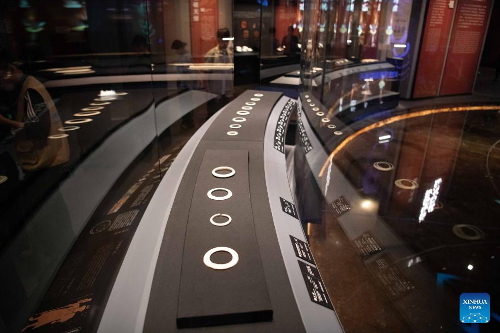 This photo taken on May 16, 2025 shows jade bracelets on display at the Lingjiatan Site Museum in Hanshan County, Ma'anshan City of east China's Anhui Province. (Xinhua/Zhang Duan)