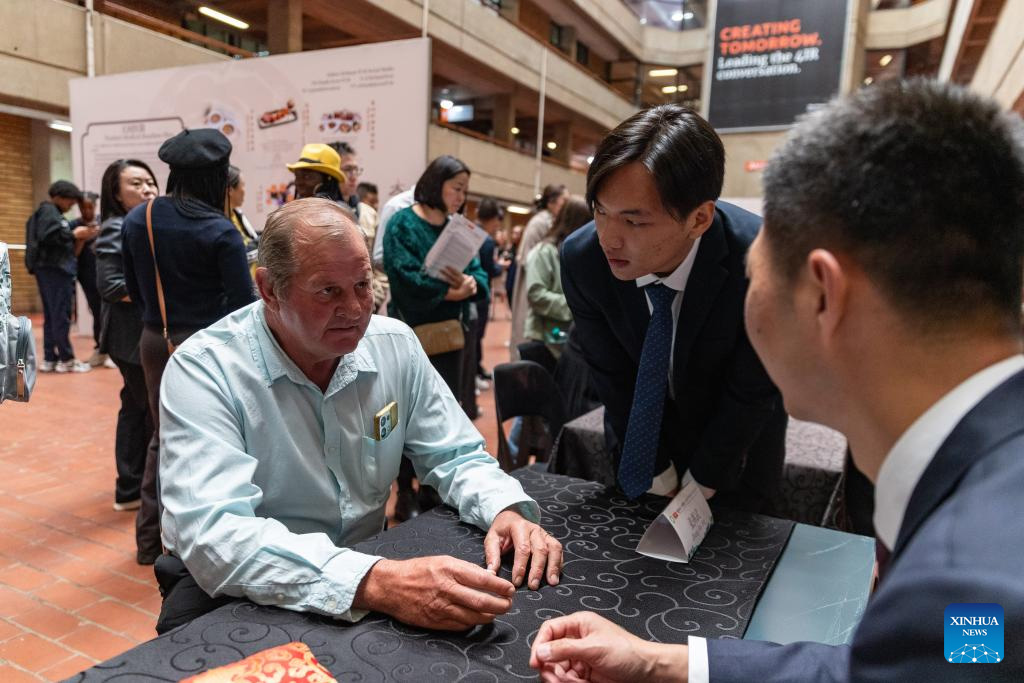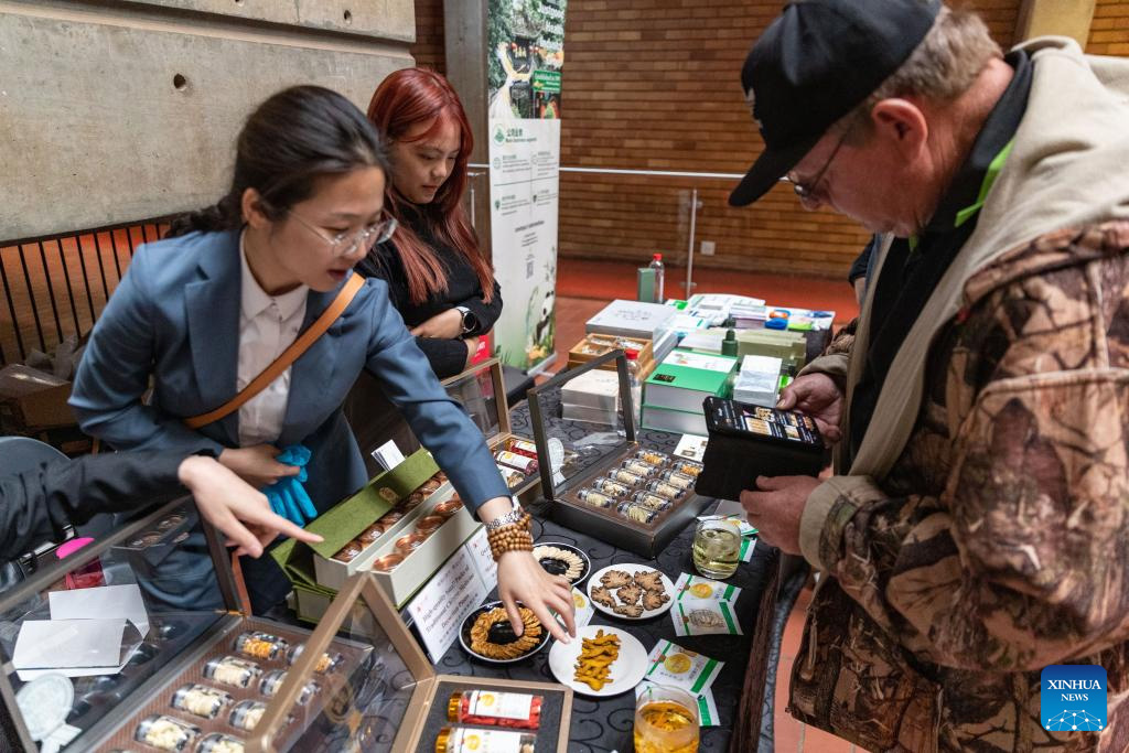 Visitors look at Traditional Chinese Medicine (TCM) products during the 2025 Sichuan TCM Cultural Exchange Tour in Johannesburg, South Africa, on May 16, 2025. (Xinhua/Zhang Yudong)