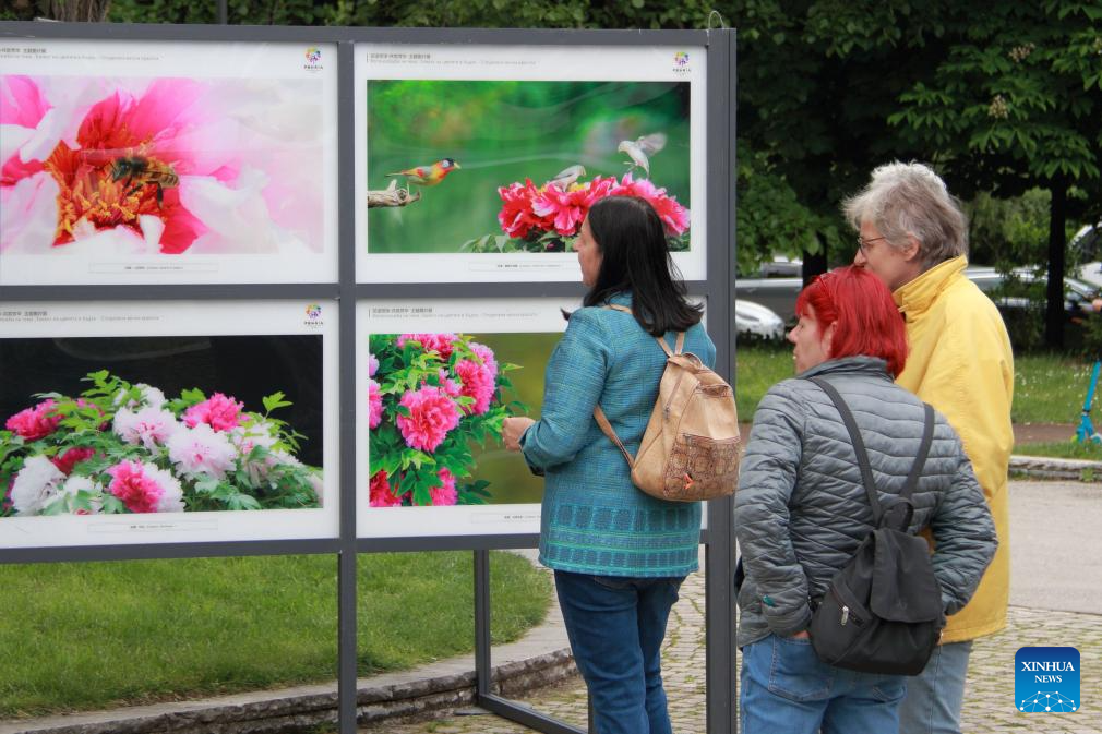 People enjoy the "Peony Festival - a Meeting of Cultures" event in Sofia, Bulgaria, on May 17, 2025. The event took place along the peony garden in Sofia's South Park. The garden was created last autumn with plants donated by China's Heze City, known as China's Peony Capital. (Photo by Marian Draganov/Xinhua)