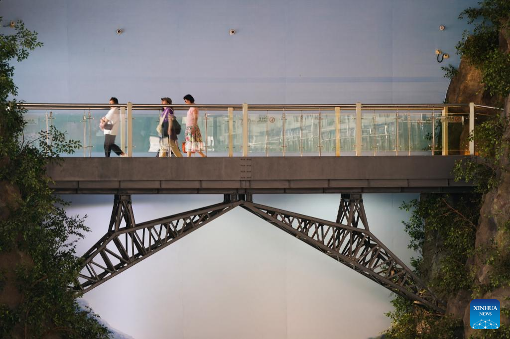 People learn about different types of rail gauges at Yunnan Railway Museum in Kunming, southwest China's Yunnan Province, May 14, 2025. Housed in Kunming North Railway Station, the Yunnan Railway Museum takes the century-long development history of Yunnan railway as the leading story line to narrate the frog-leaping evolution railway gauge standards from meter gauge to inch gauge, and standard gauge, as well as railway technologies from steam locomotives to high-speed rails. (Xinhua/Chen Xinbo)